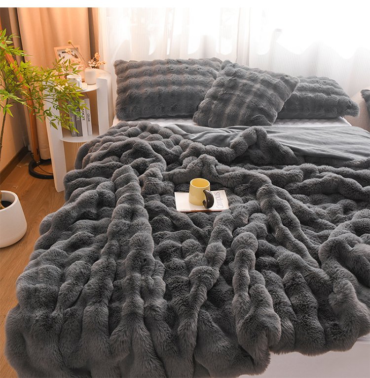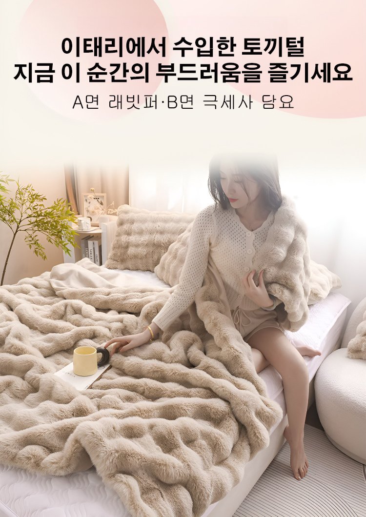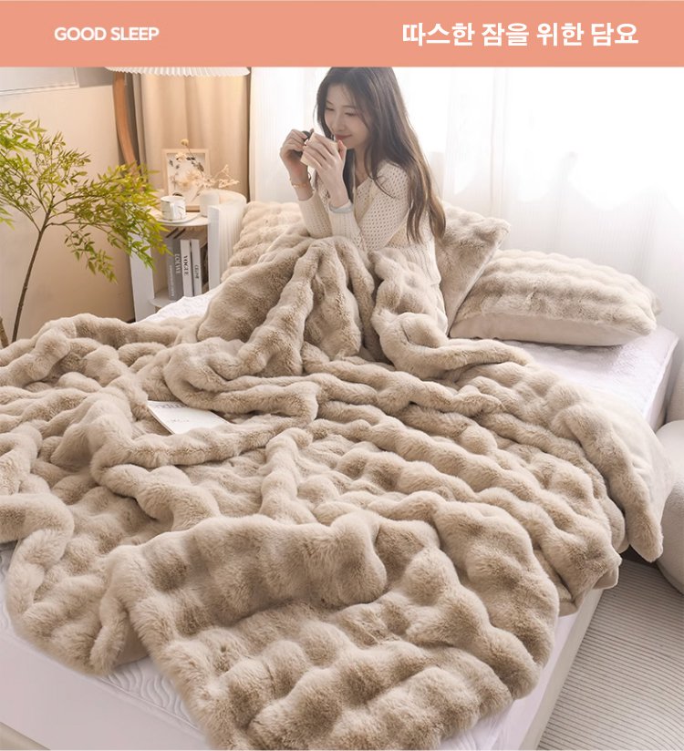 럭셔리 래빗퍼 도톰 양면 극세사 담요